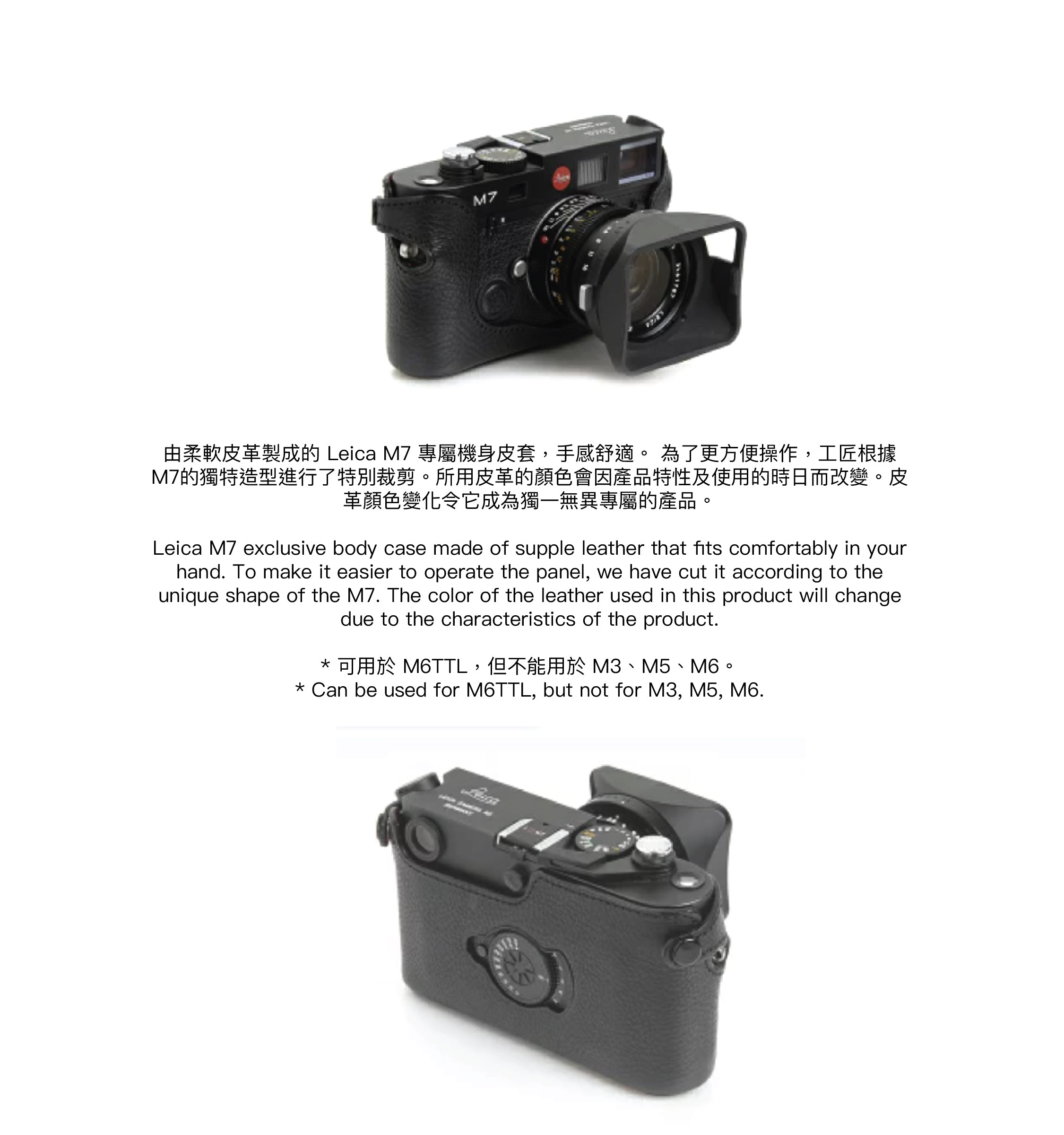當皮革老化時,相機半套會呈現出不斷變化的特性,並且更貼合相機機身和您的手。