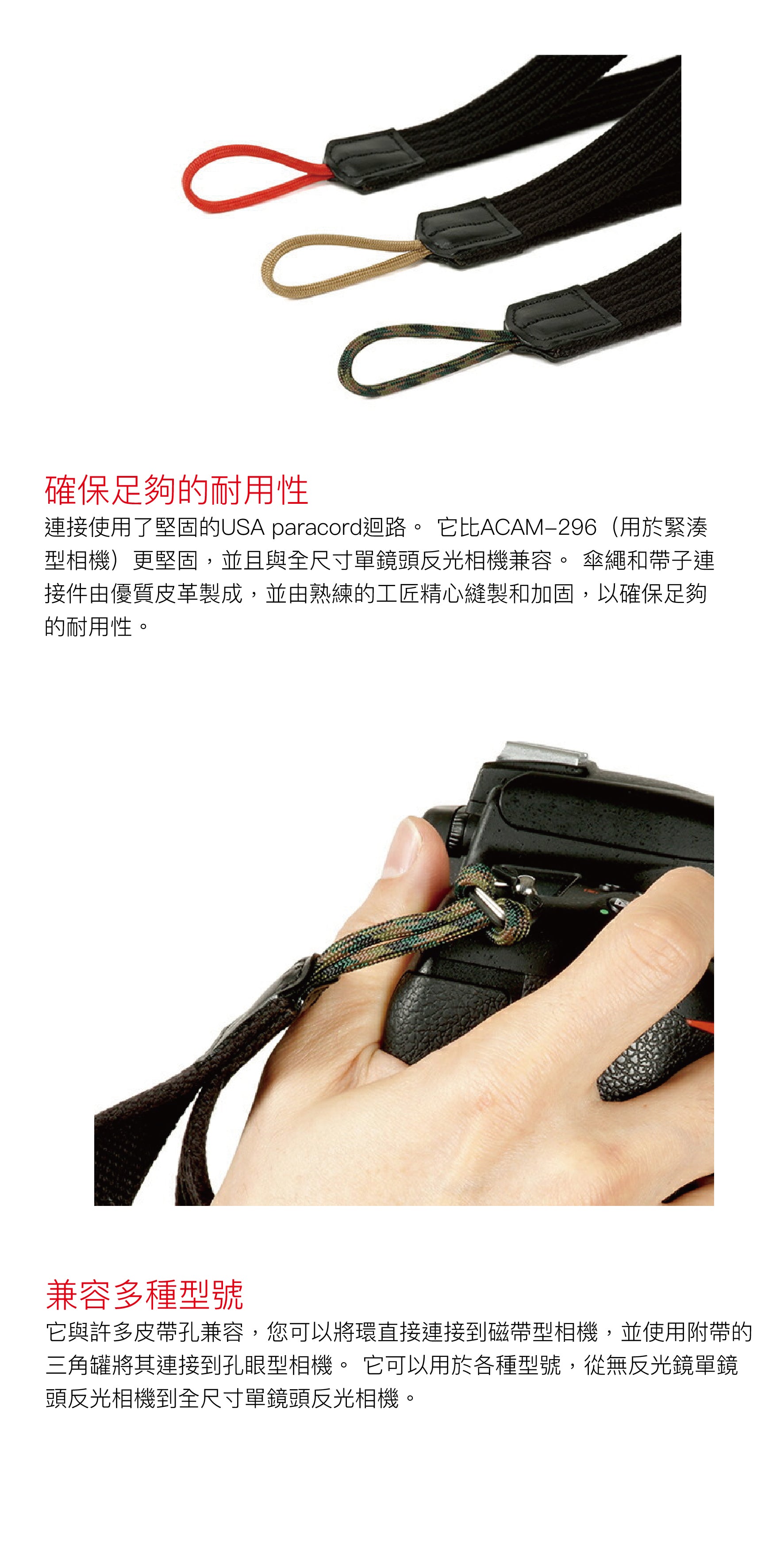 ACAM P25H降落傘繩非常耐用,適用於單鏡頭反光相機以及中型相機。