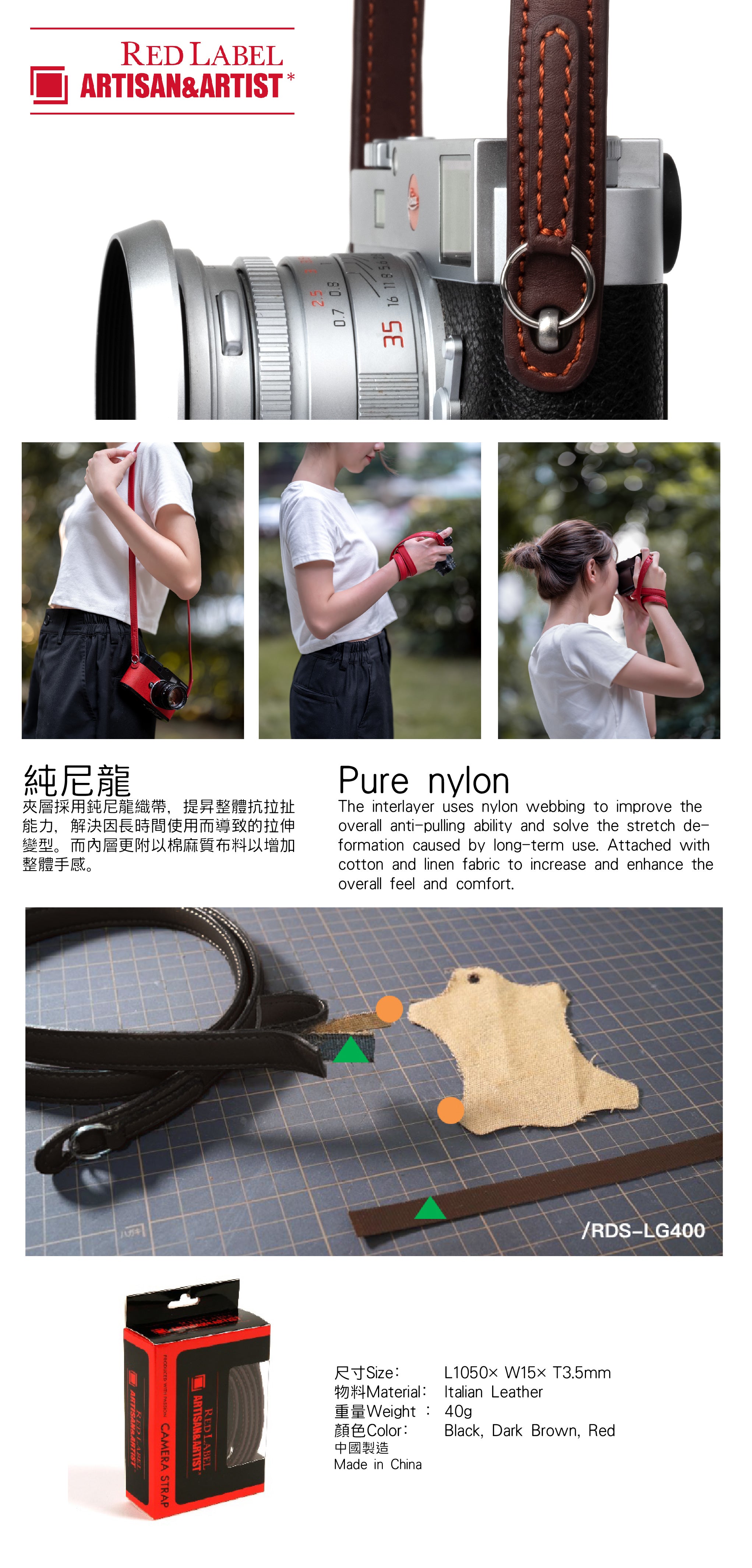 Artisan&Artist Co.,Ltd.(總部位於東京目黑區)的休閒品牌Red Label將在10月中旬發布新款環扣穿帶式相機帶RDS-LG400 / LG410。Artisan&Artist負責Red Label品牌的設計和發展方向,以靈敏的觸覺提升人們的生活,以高質量的產品但令人們充分享受工作和生活。