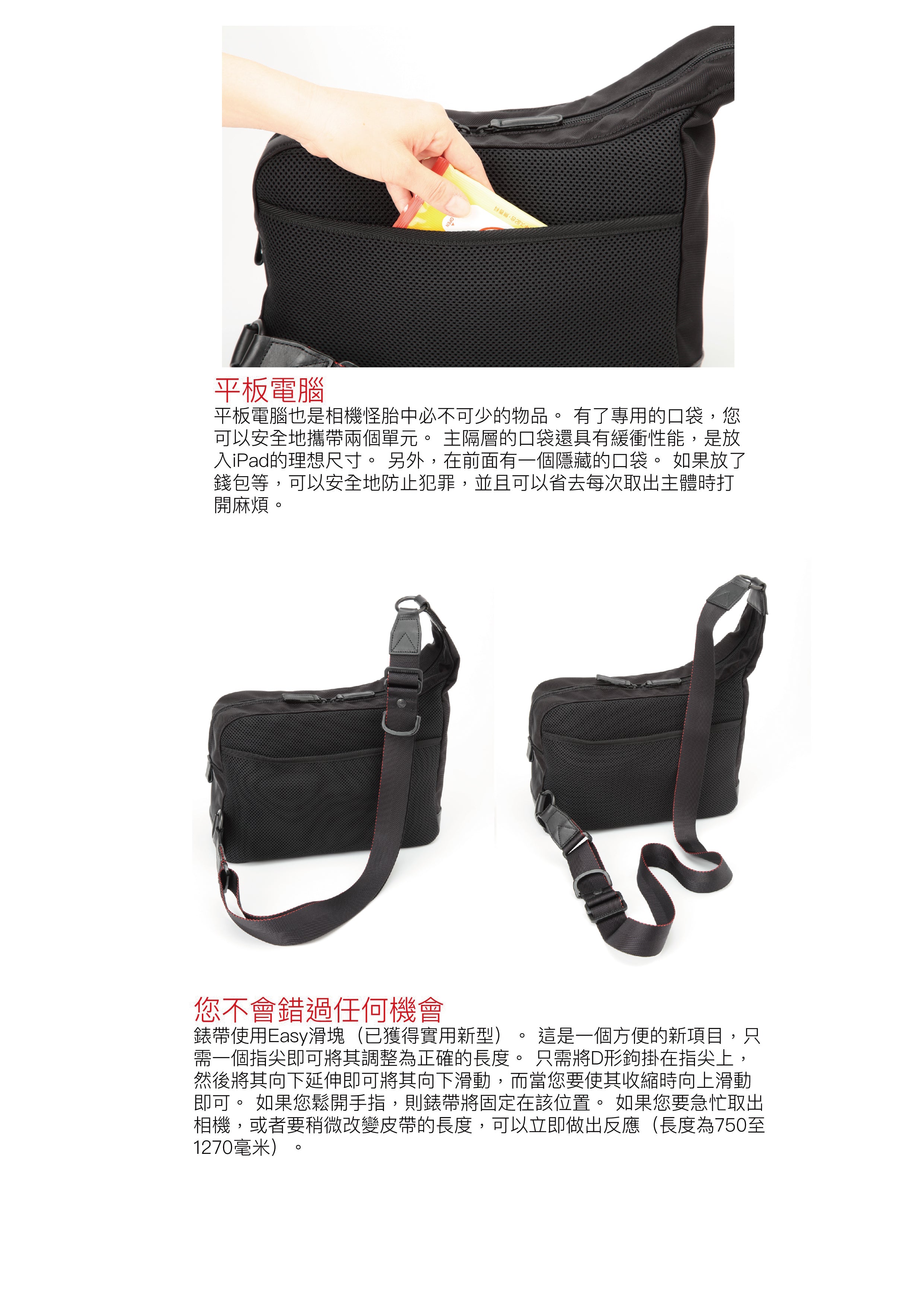 旨在容納無反光鏡相機,額外的鏡頭和iPad,是運動人士的理想攜帶解決方案。