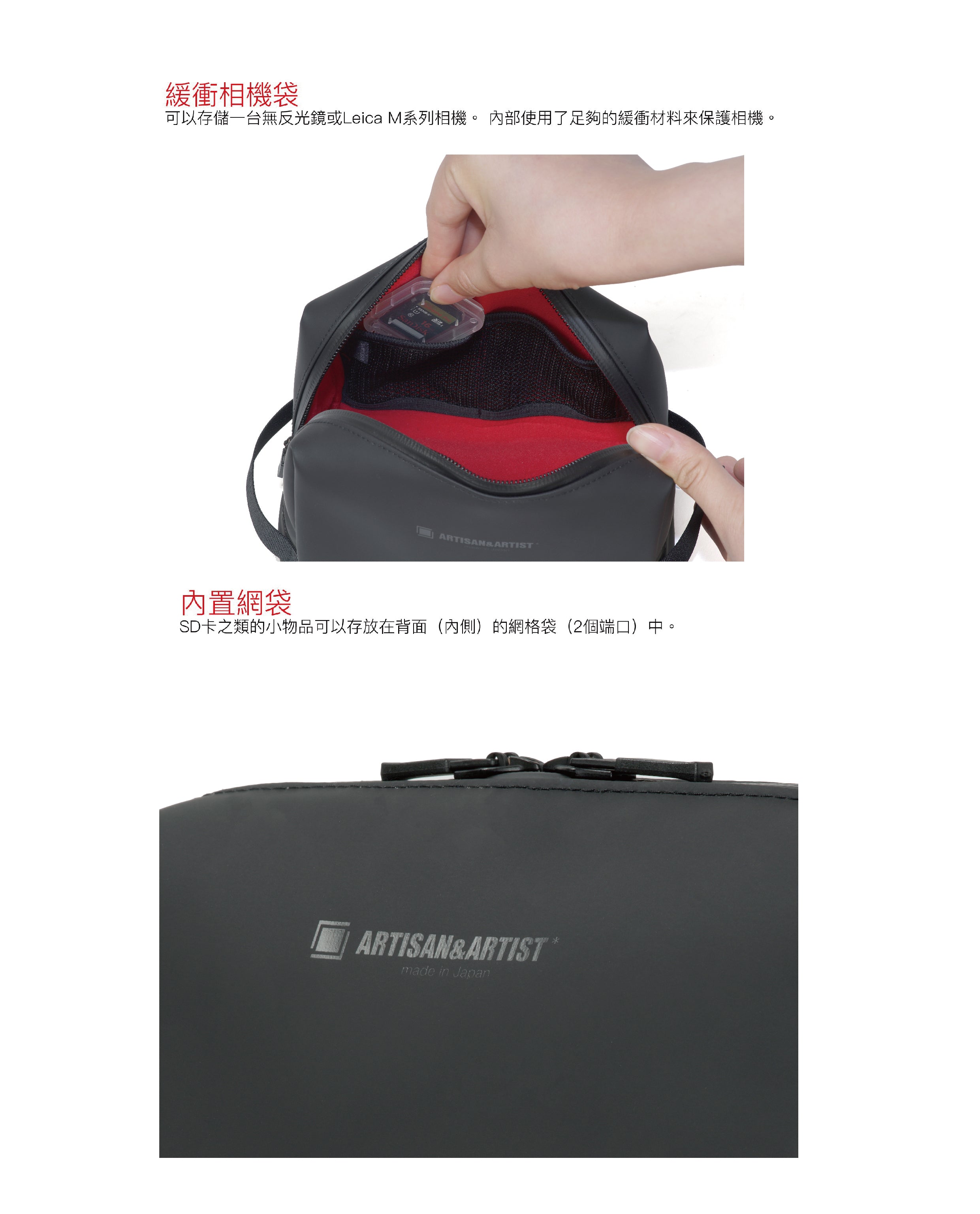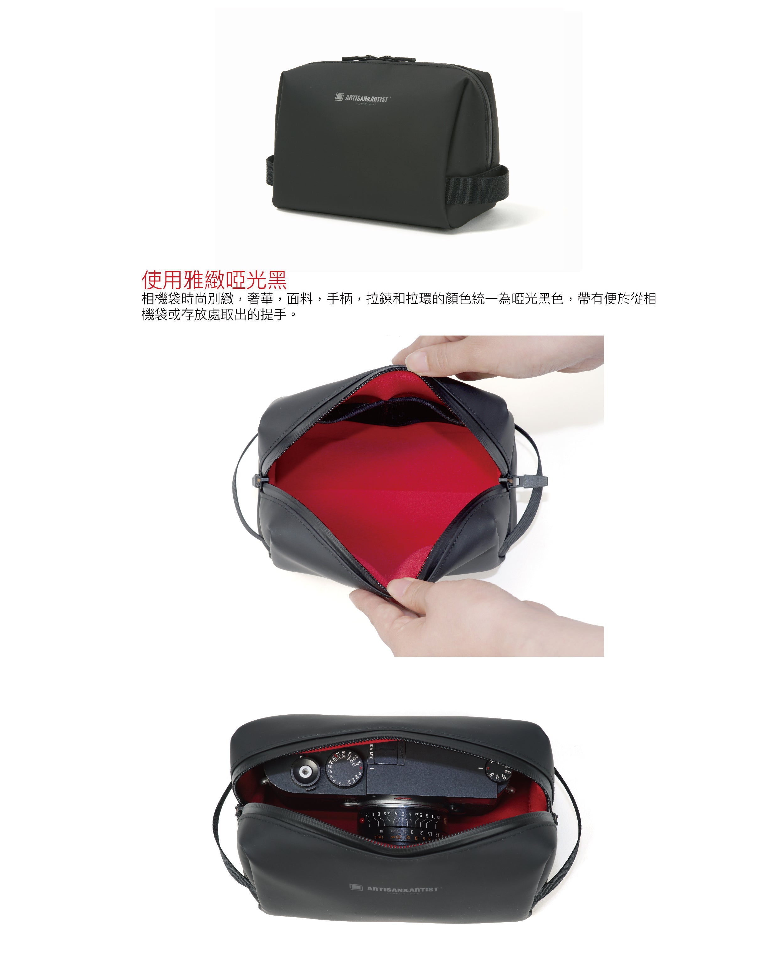 可存放一台Leica M 系列鏡頭和一個可更換鏡頭或無反光鏡相機。 內隔板採用厚墊材料製成,以固定相機並防止打開和關閉頂蓋時拉鍊傷害內部物品。