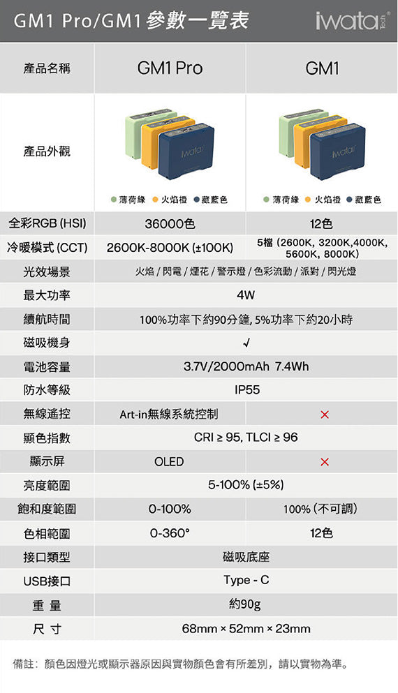 iwata GM-1/GM-1Pro 輕巧色彩LED補光燈