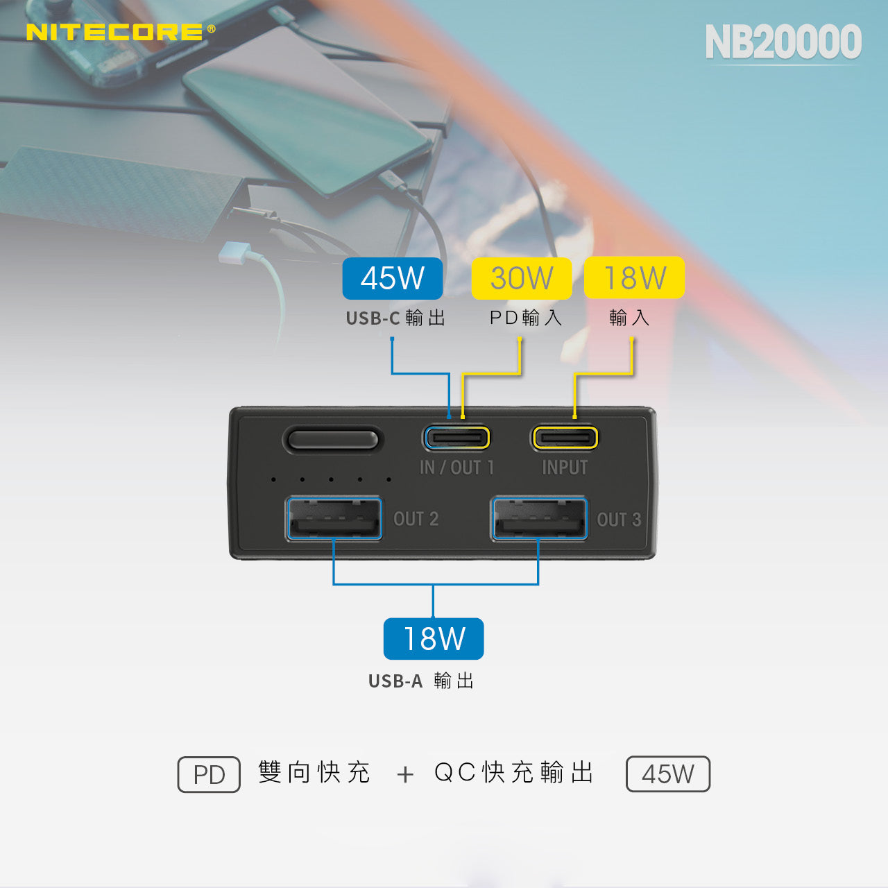 USB-C (OUT1) 5V⎓2.4A / 9V⎓3A / 12V⎓3A / 15V⎓3A / 20V⎓2.25A (45W MAX)