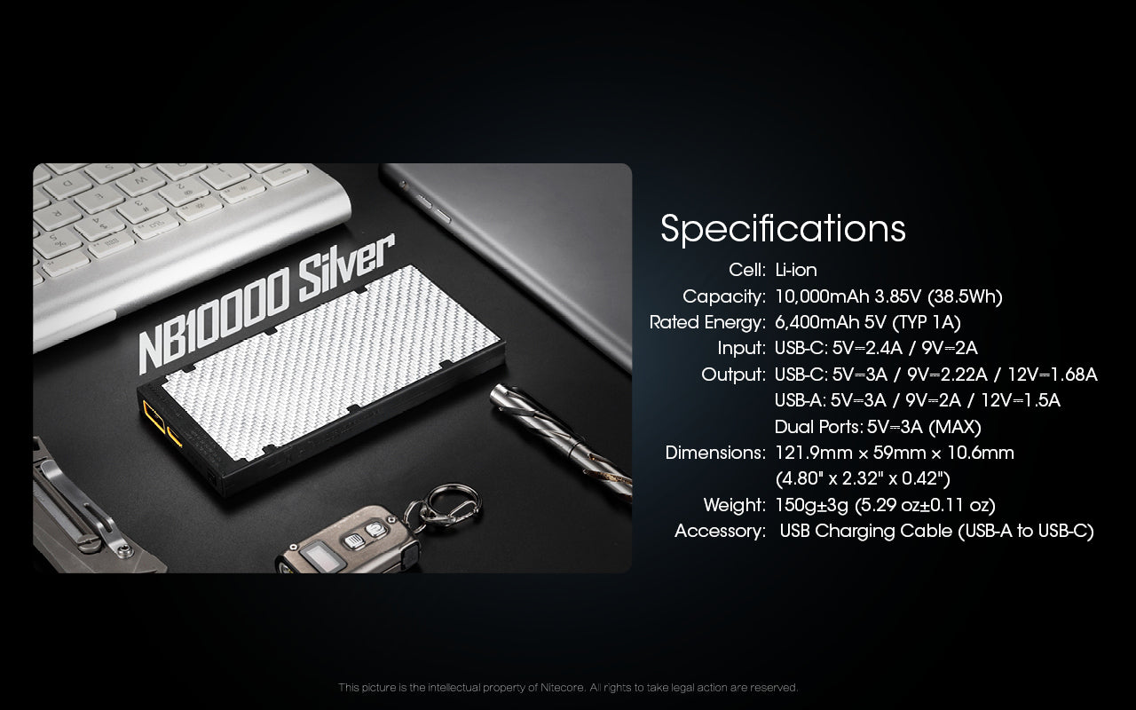 Capacity: 10,000mAh 3.85V (38.5Wh)