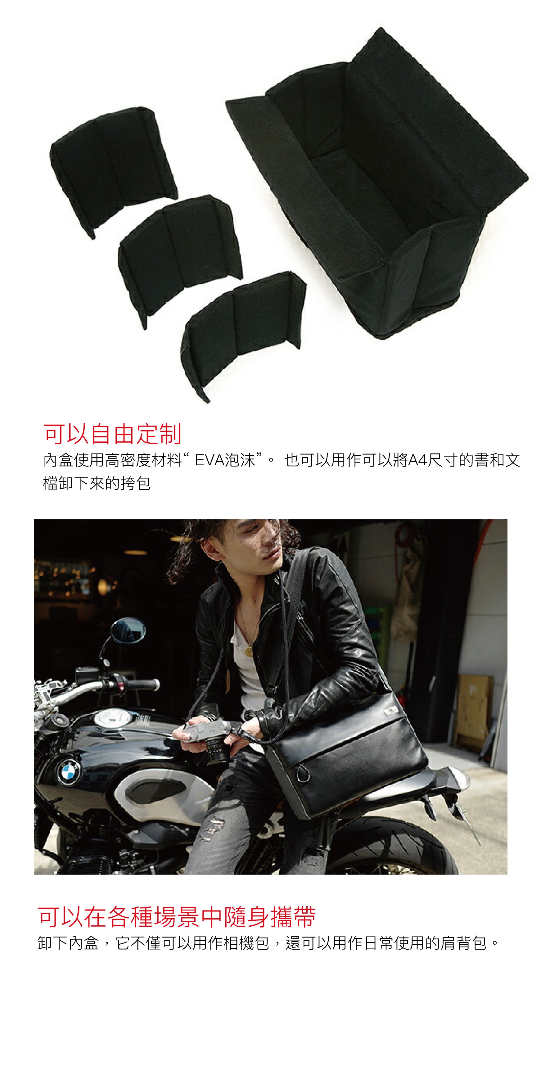 In order to realize a fine-quality texture similar to the interior of luxury cars, synthetic leather which is light, resistant against water, and deteriorates less over time, was chosen as the main material for this series. Furthermore, a high-density cushion material called “EVA foam” was used to protect the equipment. The practical details as in the fit feel when carrying the bag on one’s back and ease of taking the equipment out, were designed by going through many trials and tests. By procuring the carefully-selected materials in Japan and handling the production overseas, we realized a product line-up with excellent cost-efficiency making it affordable also for the entry-level segment while maintaining the same level of functionality, design, and high-