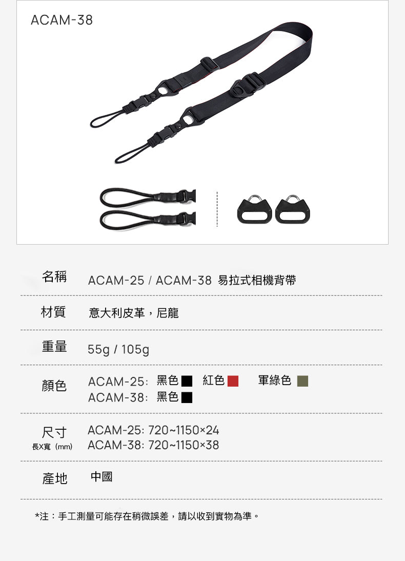 🔥In Stock~ Order Now~ 🔥Free SF-Express shipping for spending over $500 WEIGHT : 105g SIZE: Length : 720mm - 1150mm; Width: 38mm MATERIAL : Nylon (tape, connection), Italian Leather (seal), Duraflex Made in China