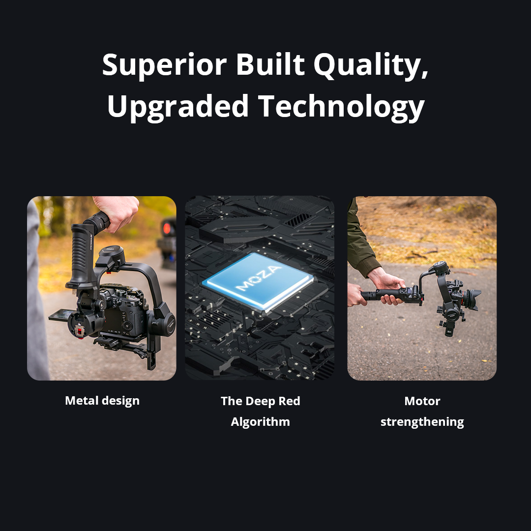The Deep Red Algorithm makes the Moza Aircross 3 much better at attitude control, behaviors prediction and singularity unlocking which provides higher levels and stability and control over your shots.