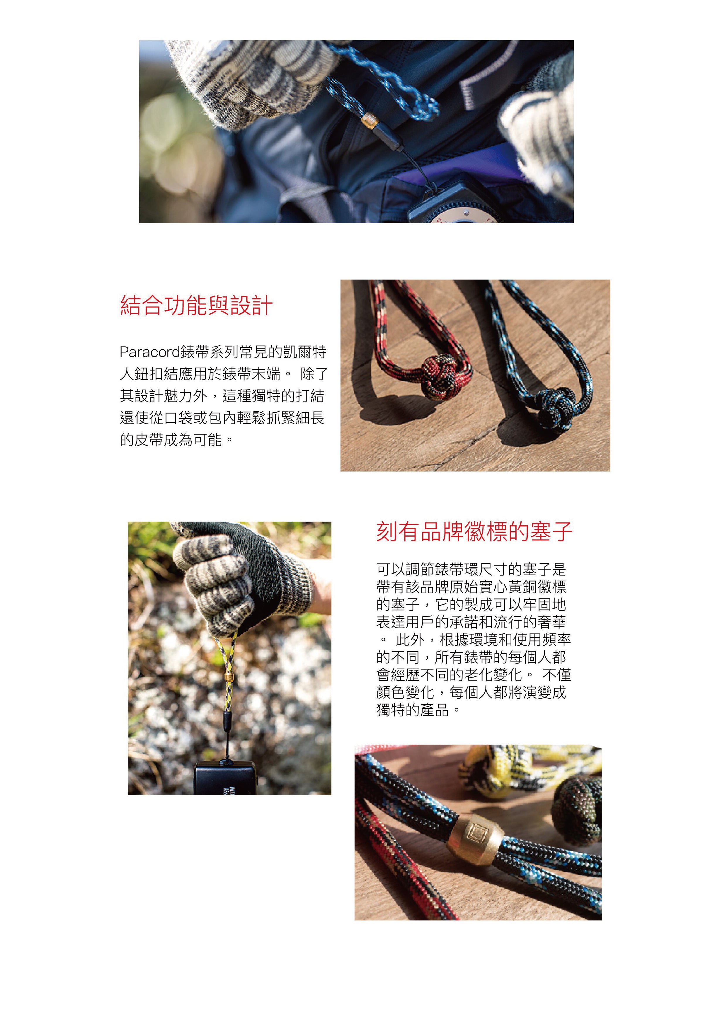 Like the paracord strap ACAM-P25 and ACAM-P25H, this product features a Celtic knot button centered in the loop. This adds charm to the design and enhances traction on the wrist.