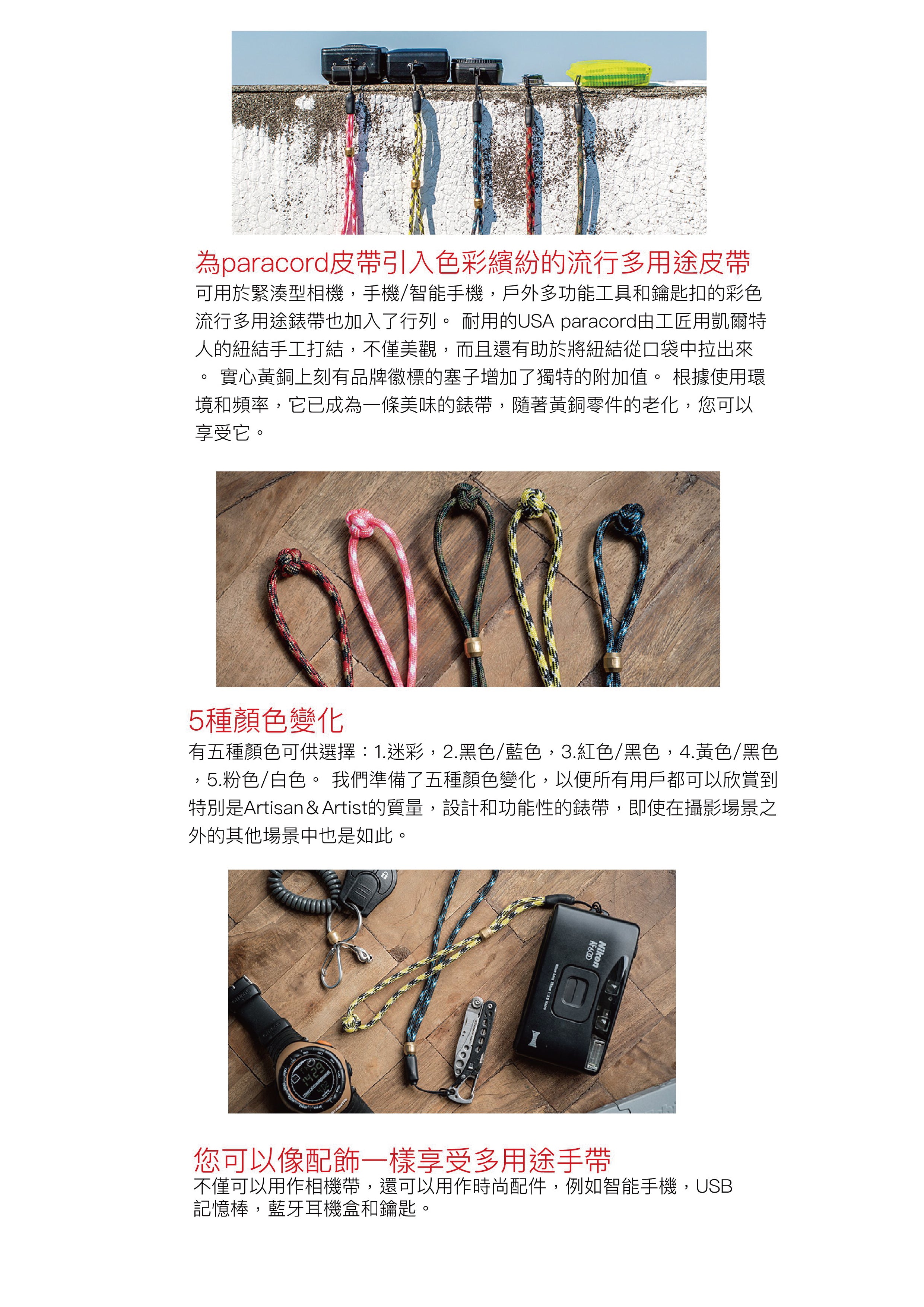The high quality material and five different color variations allow the hand strap to be used in a more versatile way, including as a camera, mobile or smartphone strap and as a key holder.