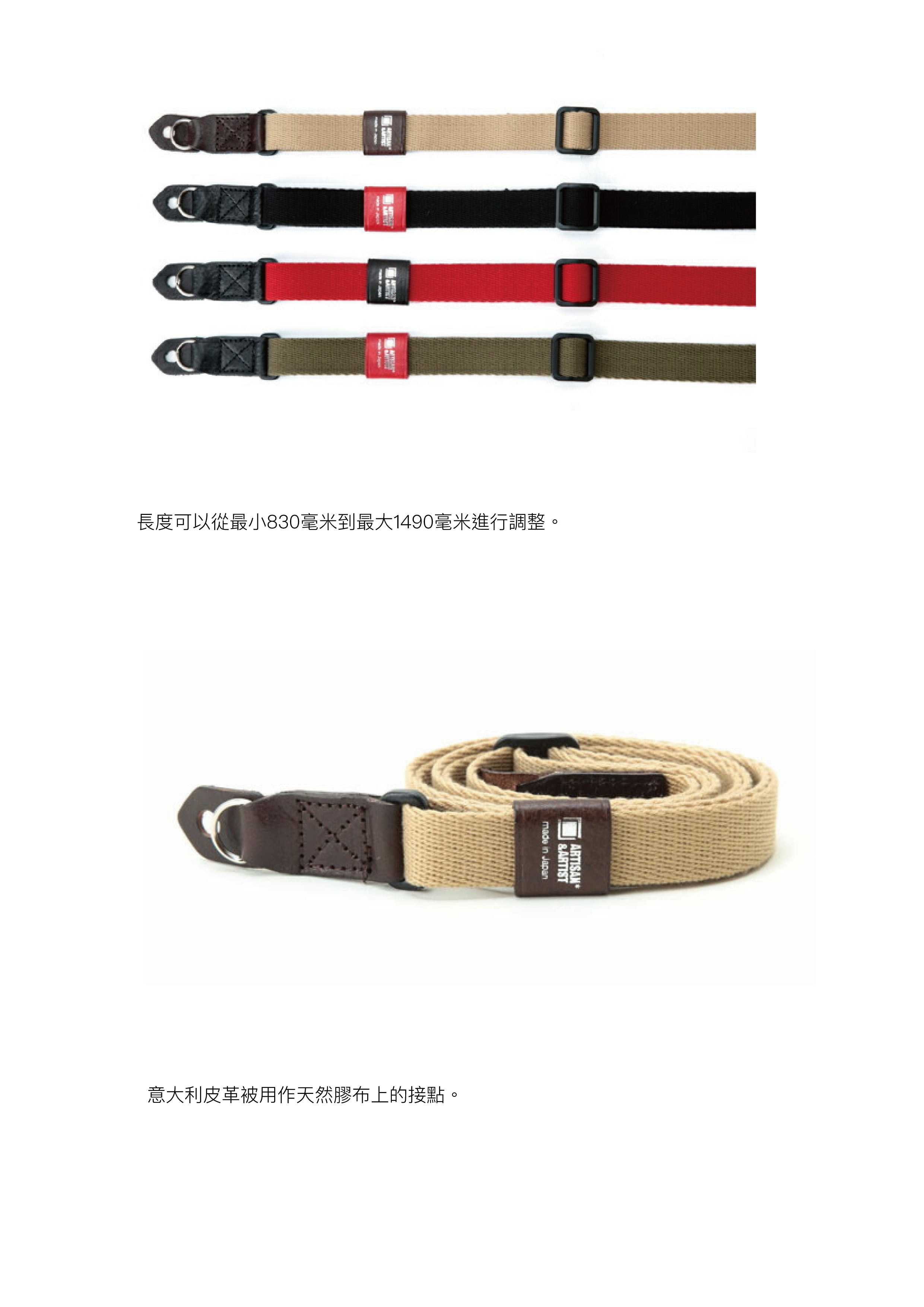 Made of acrylic tape, the strap is soft and can accommodate various carrying styles.