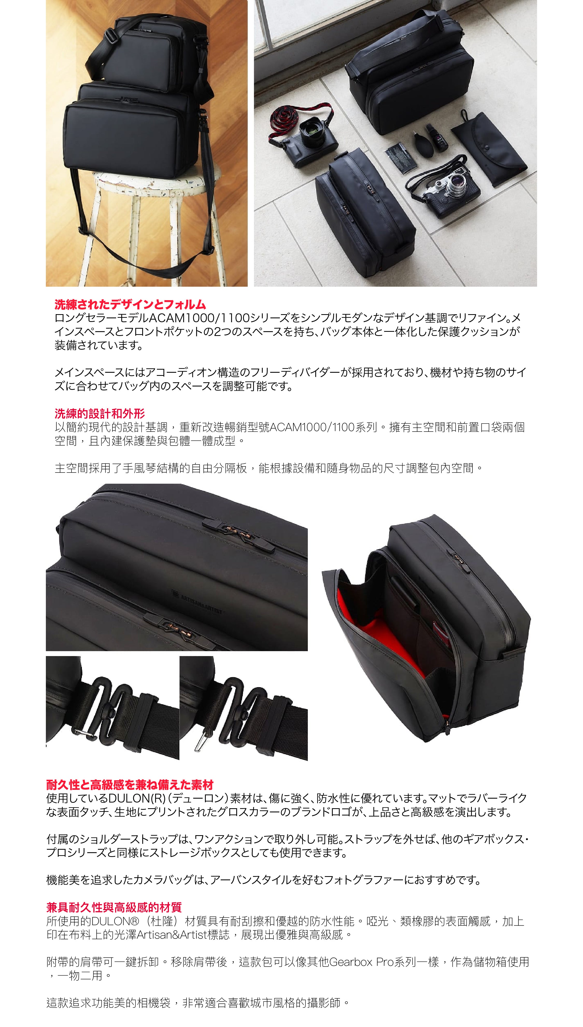 Artisan & Artist's camera bags pursue functional beauty with their design, making them recommended for sophisticated photographers who prefer an urban style.